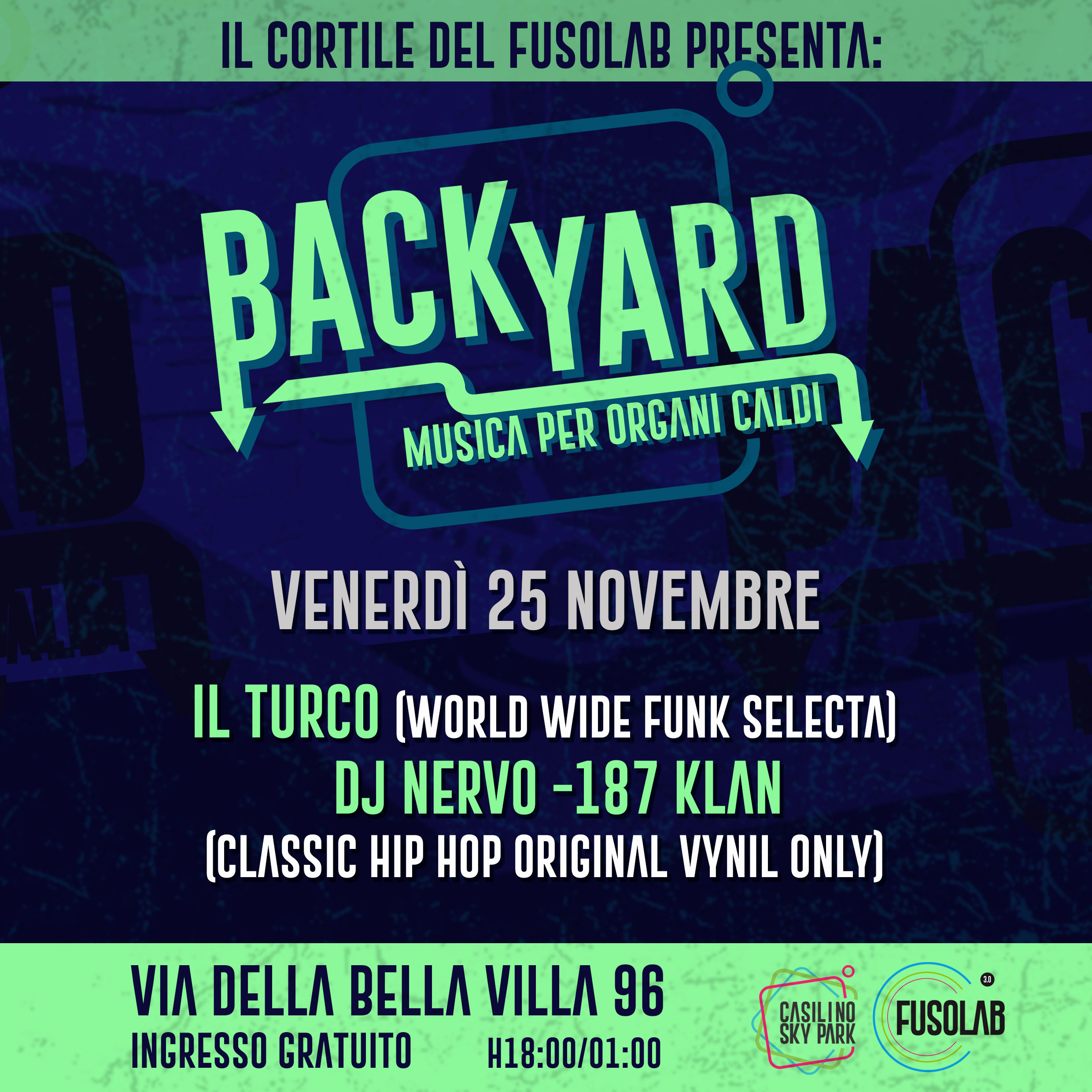In perfetta continuità con il solco tracciato dal percorso del Fusolab, le serate BACKYARD sono un omaggio alla musica come strumento collettivo d'aggregazione,
