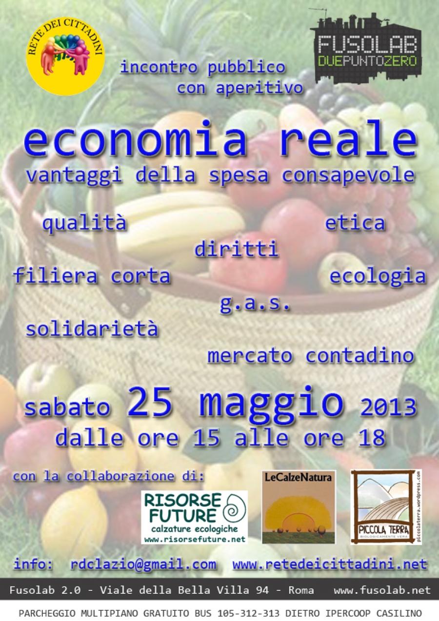 "ECONOMIA REALE" che si terrà sabato 25 maggio 2013 dalle ore 15:00 nei locali di Viale della Bella Villa, 94 - Roma.