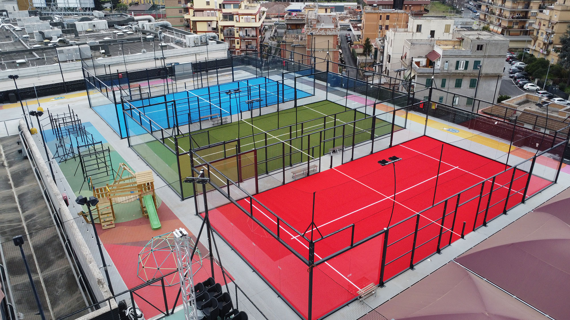 I primi campi a Roma con manto testurizzato Adidas di ultima generazione, dotati di telecamere per riprendere le partite e salvare i momenti salienti dell'incontro e sistema automatico per segnare punti e cambio campo.